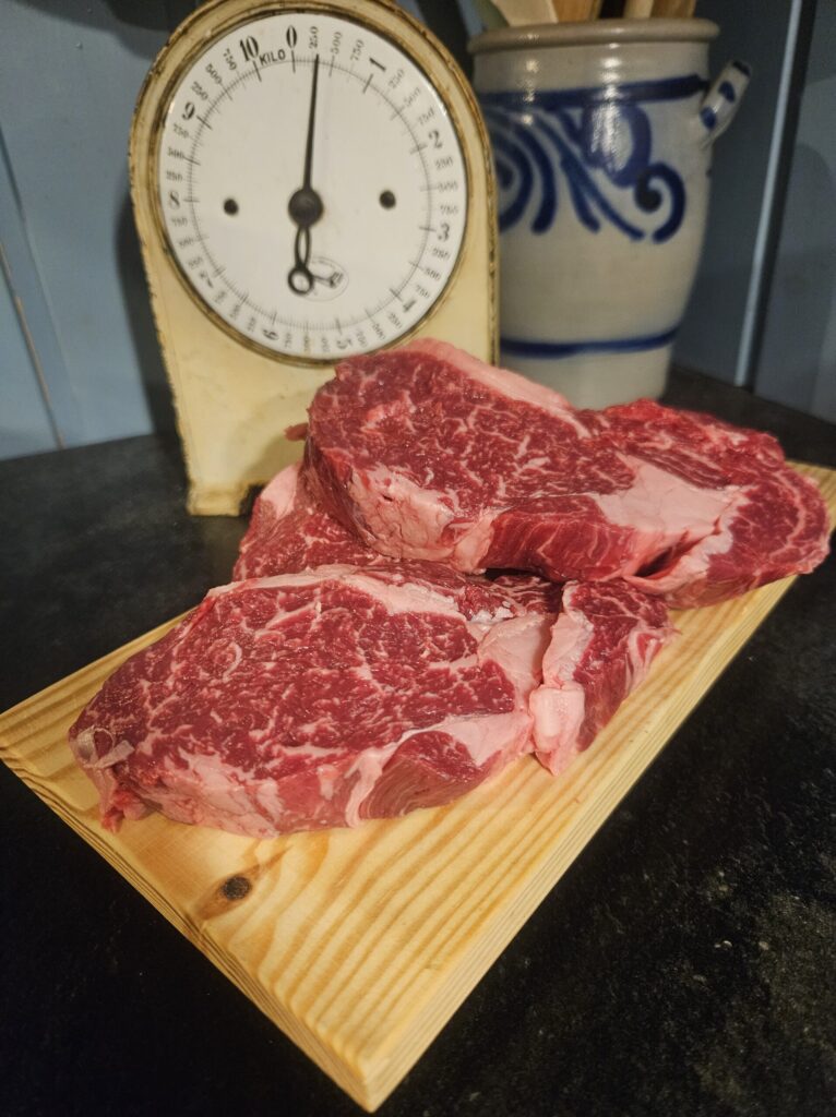 Fra ammekuflokken får vi Grasforet STN-Urfe kjøtt, dette er mørt, smakfullt, godt marmorert og magert storfekjøtt. Kjøttet selges som frysevare i stykningsdeler, spekemat og andre produkter der utvalg varierer igjennom sesongenes etterspørsel. Dyrene får ikke kraftfor, så de er foret frem kun på gårdens ressurser. STN-Urfe er nøysomme, friske og aktive dyr som utnytter utmarka godt og vokser sakte. Alle dyrene får tilgang på å være ute hele året, fjøsporten står alltid åpen for en luftetur i skogen nærmest tunet på vinteren også.