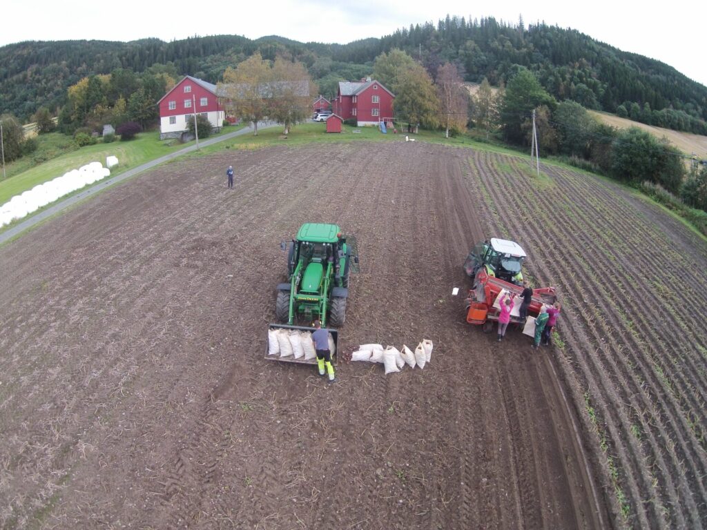Gården produserer usprøytet poteter av sortene Rutt (tidligpotet) og Nansen (lagringspotet). Begge sortene er røde allsidige poteter med rik smak, som passer godt til vekstforholdene på gården vår og trives godt i leire-jord.