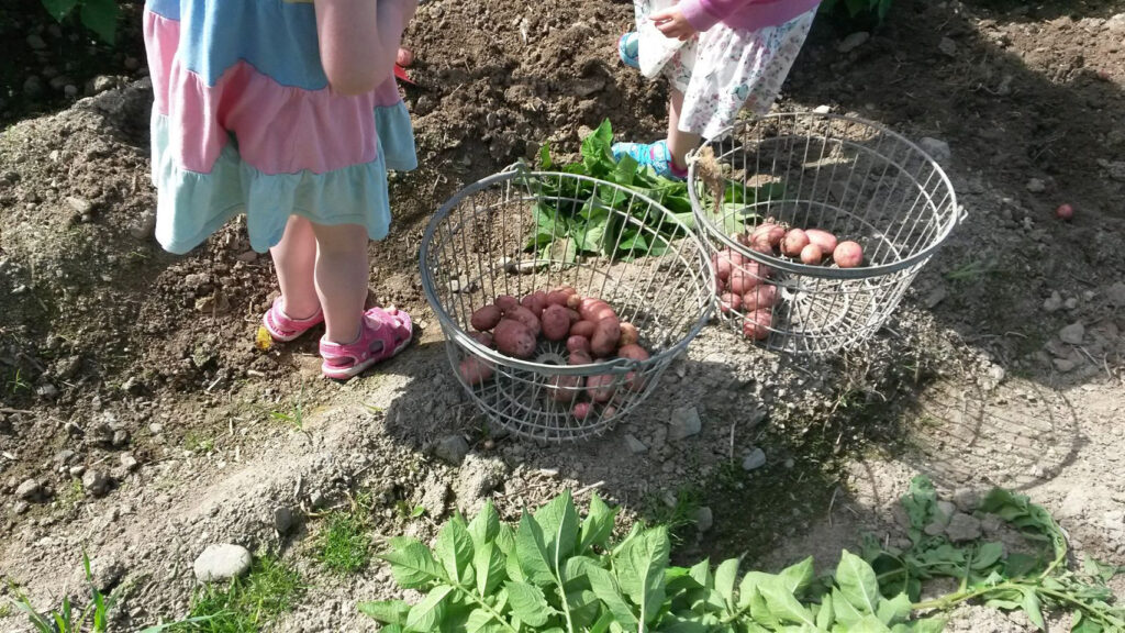 På sensommeren tilbyr vi selvplukk på potet før innhøsting – med bøtte og grev kan både voksne og barn fange sine egne poteter. Her får man komme tett på jorda, lære om potetdyrking, hilse på dyrene på gården og ta med seg dagens fangst hjem. Selvplukk annonseres i sesong.