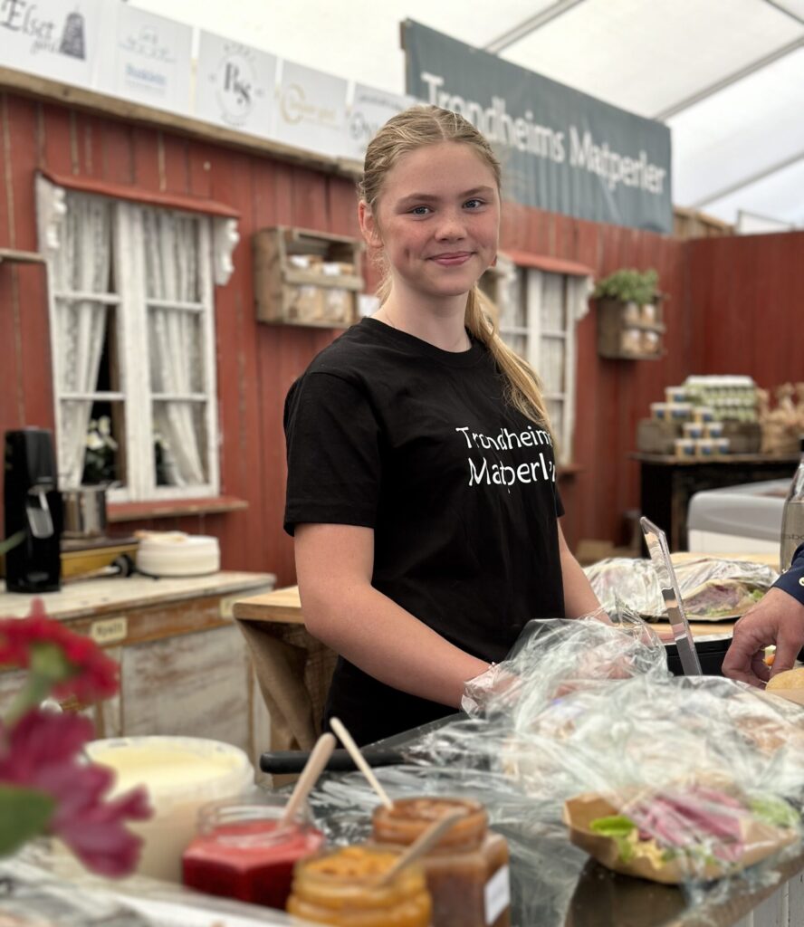 I sommersesong har vi åpen gårdskafé med salg av kake, kaffe og vafler med nyrørt syltetøy og lokalprodusert rømme. I gårdskaféen er det også gårdsutsalg med en rekke lokalproduserte varer fra Trondheims Matperler, alt fra kjøtt og potet til meieriprodukter som melk, smør, rømme og youghurt.